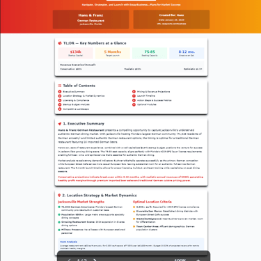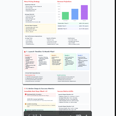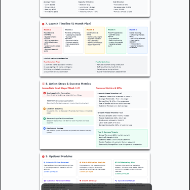 Unlike generic templates, this tool uses AI-driven research and strategy frameworks. Your plan is built around your exact answers and location, producing a branded PDF with financial projections, compliance steps, and launch action items.