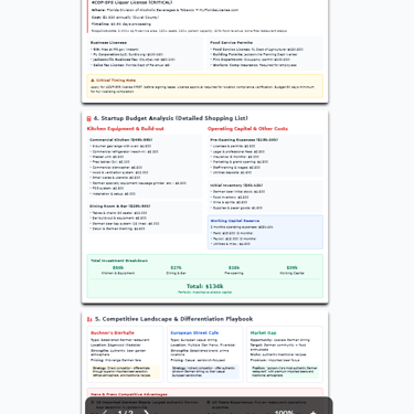 Yes. The generator adapts to different industries and regions, whether you’re opening a restaurant, launching a SaaS startup, or testing a retail concept. Each plan includes competitor insights, licensing guidance, and startup budget details specific to your market.